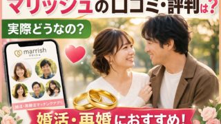 マリッシュの口コミ・評判は実際どうなの?婚活・再婚に特化したマッチングアプリの特徴やメリット・デメリットを徹底解説。結婚したい人に向いている理由や、他アプリとの違いもわかりやすく紹介します。