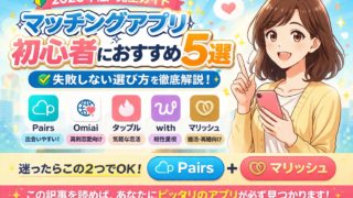 マッチングアプリ初心者におすすめ5選をわかりやすく解説。Pairs・Omiai・タップル・with・マリッシュの違いや選び方、失敗しないポイントを紹介。これから始める方でも安心して使えるアプリが見つかります。